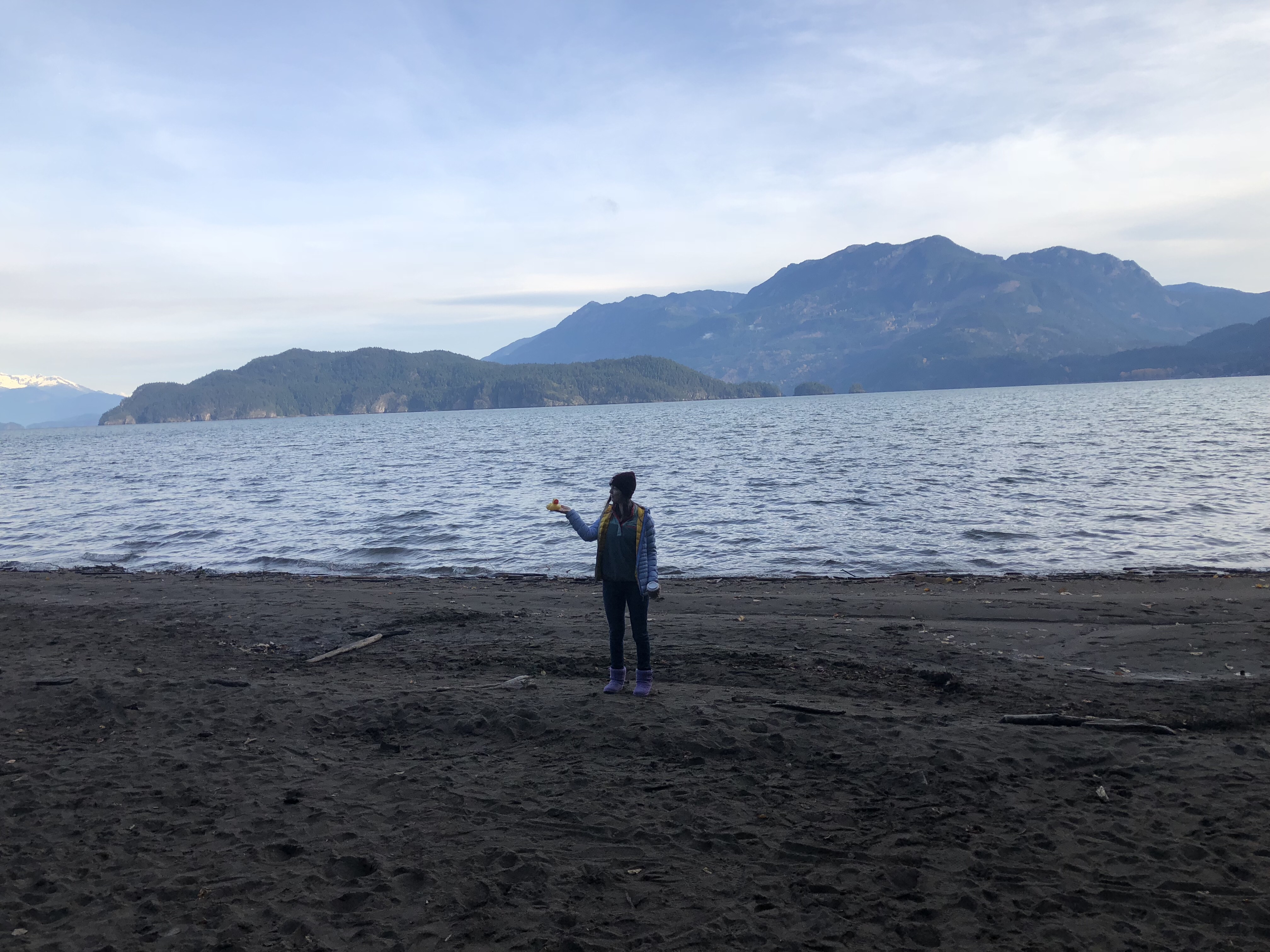 I’m glad that we did the little hike. It was a winding little trail that had a peeking view of the water, a marina across the bay and foothills off in the distance. After about 15 minutes we made it to the beach. It really was a beautiful sandy cove. I walked along the beach finishing my Canadian Starbucks, taking in the views. Ryan and I were able to pick up all the visible trash and stash it in our empty cups and carry it out to the trash. Rubber ducky and all. On the way back I found a few boulders! People definitely visit them but not climbers. With a lot of scrubbing they have potential, enough that I was bummed I didn’t bring my shoes. Maybe next time. I really should just get my ass to Squamish for a weekend..