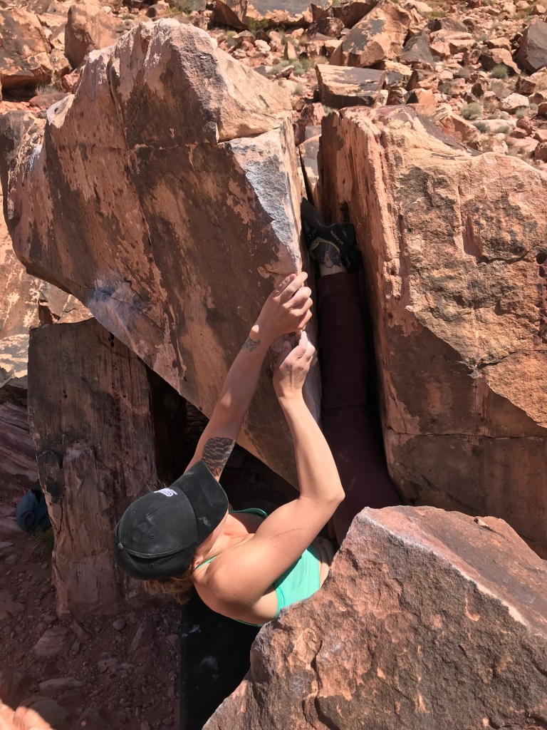 My favorite problem in Vegas that I haven’t sent yet is the Campus Problem, V5. Authentic pebble wrestling, at its finest.