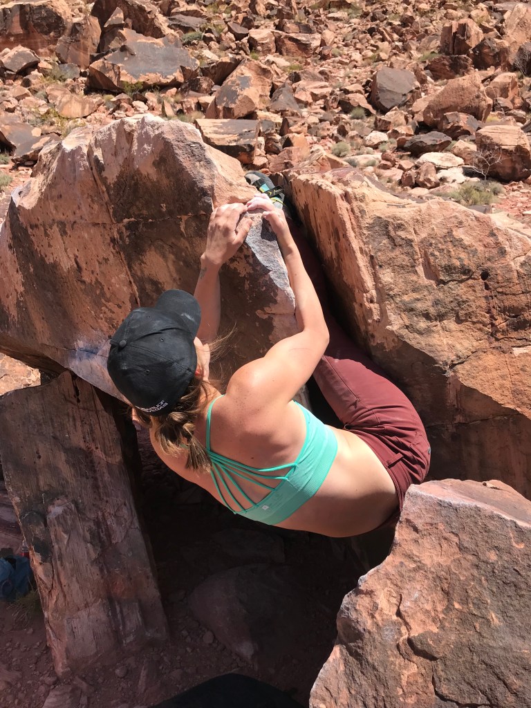 On Saturday we were feeling pretty dang spent. I was sore ALL over. The plan was to meet up with Brandon and his girlfriend Lisa and rope climb again. We quickly realized that rope climbing sounded terrible and begged them to boulder instead. Didn’t take much as they prefer bouldering anyway. I barely got any pictures from this day because we were doing more failing than sending, all in good fun anyway. I have grown to love the Kraft Mountain and Gateway Canyon areas. Nothing notable happened on the rocks but here are a few pictures from past trips of my favorite problems that I did get on. The first is Butterfly Kisses, my favorite way to send this problem is to invert!