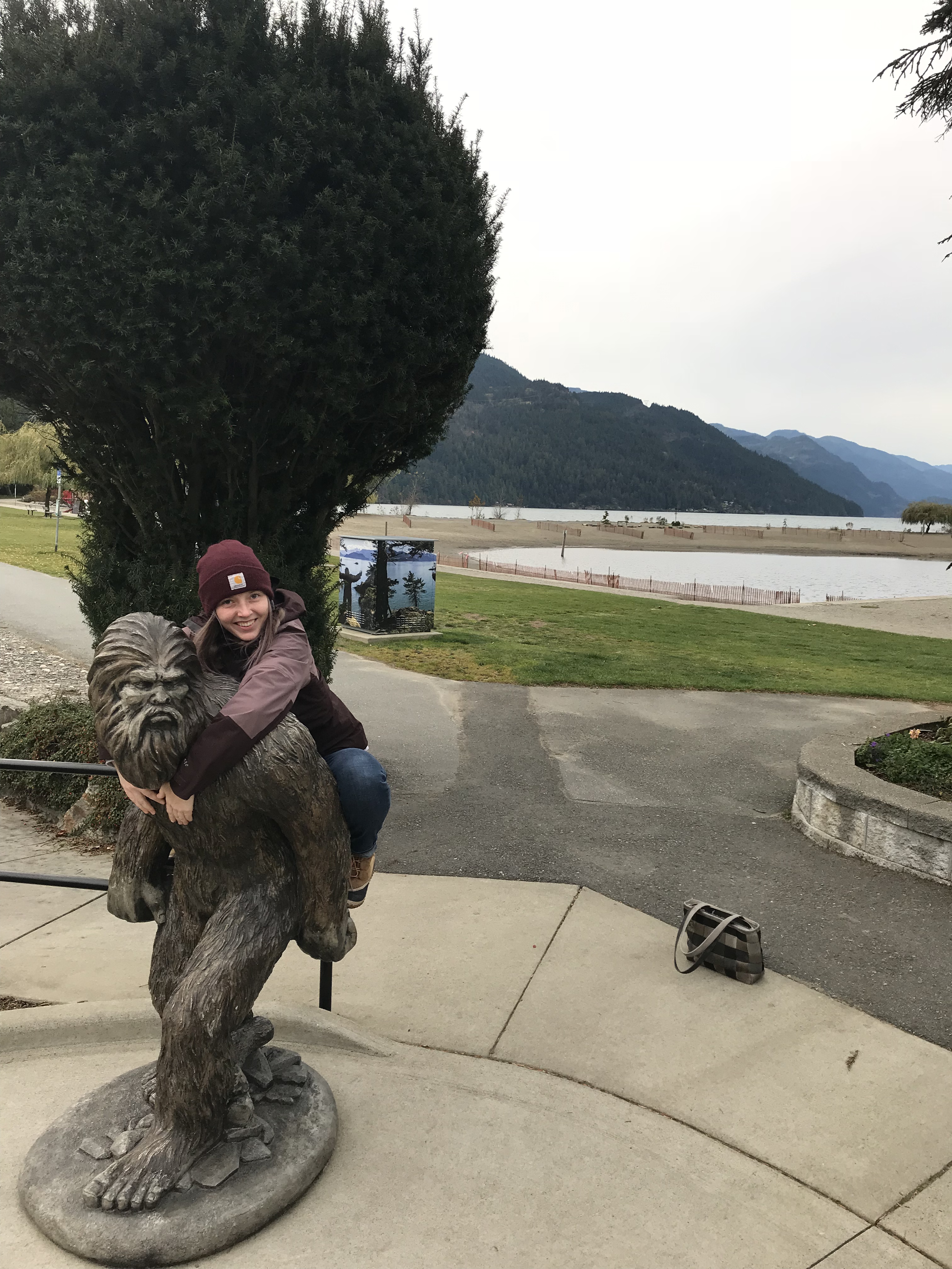 There’s a resort spa there, Harrison Hot Springs Resort & Spa (go figure). We stayed in a room with a little balcony overlooking the lake. There are four pools and a really nice hot tub there. Three outdoor pools, one inside with the hot tub. We spent quite a bit of time in the hot tub and indoor pool, it was characteristically chilly and wet outside. The outdoor pools are heated of course but when raining you have to hang your towel and robe a good 10-15 feet away from the pools entrance…YIKES! Bounching back and fourth from the very hot hot tub to the pleasantly tepid pool was perfectly fine by me. Tuesday’s weather was lovely. Ryan and I woke up and got coffee at the make shift Starbucks they had at the resort. They called caramel macchiatos “caramel Macs”, so silly. After that we went on a walk around the area. There is a very short and developed path that you can walk to the hot springs origin, that was pretty neat. Theres a small drain pipe leading from the original natural spring pool out to a pond, you can touch the water. Its hot enough though that you would not want to hold you hand under for any length of time. I took a little and sipped it into my mouth really quick, I’m hoping its the fountain of youth or something.