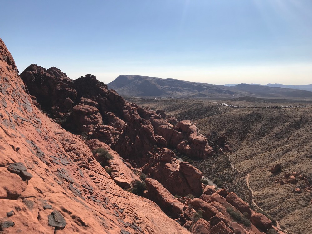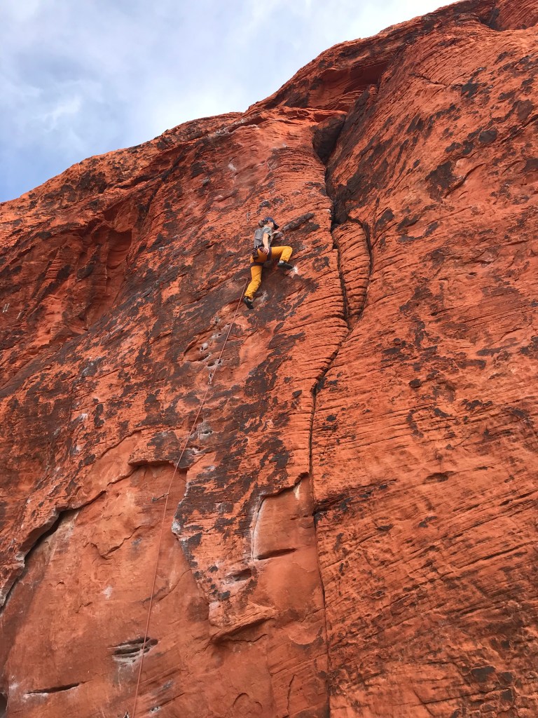 Quite the scramble it was! I really enjoyed every minute of it though. Hands and feet though some-most sections. Working our way up and up and around to a beautiful secluded wall, over looking the Red Rocks Scenic Loop.