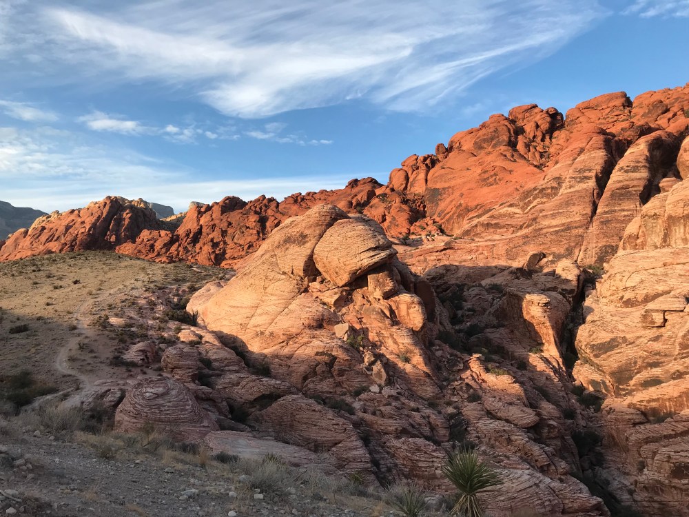 Sunday we didn’t have a ton of time, we needed to be at the airport by noon. We decided to go back into the park to see the Stratocastor wall, the whole reason Marco wanted to go to Red Rocks in the first place. Parked the car by 7 and started our trek three tiers high up the mound. My dumbass forgot to change my shoes before I started the walk, puppy boot adventure it is!