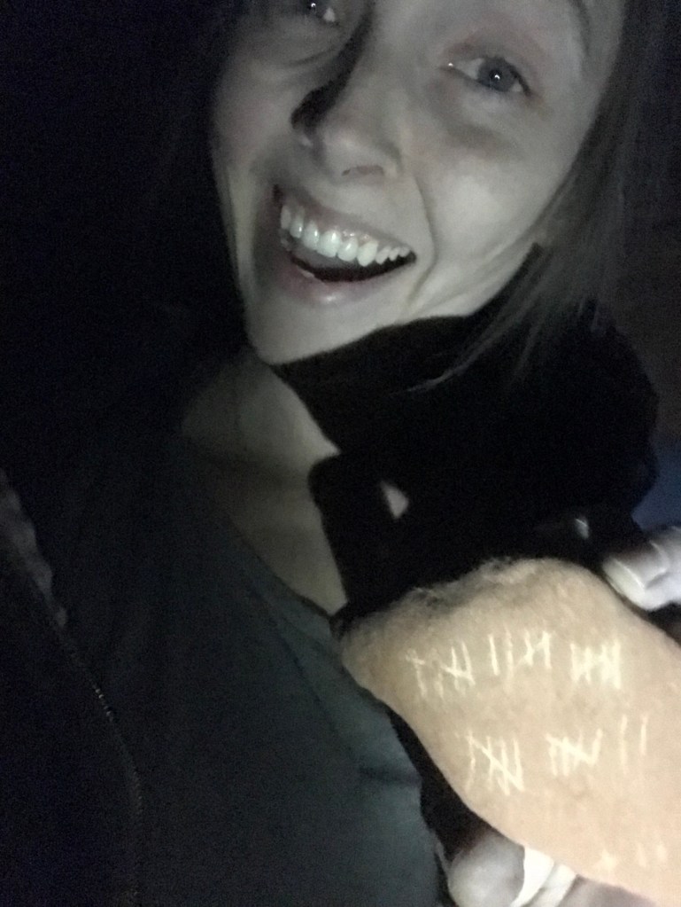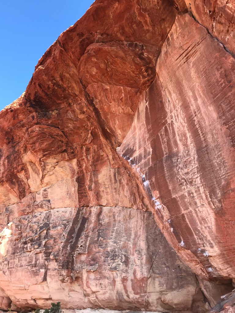 We climbed one route up there that looked like huge jugs, playful movement. Got on it and found that it was a bit deceiving . The start was very overhung, and it had a huuuge move that slapped up to a slopey jug. Once we struggled up it we each repeated it a few times, I personally really enjoyed it. I was feeling stronger as I climbed. My muscles felt sore and weak but when I was climbing I found I was able to pull hard when I needed to, for longer than I thought that I could. Super convenient. I’m sad that we had to leave already.