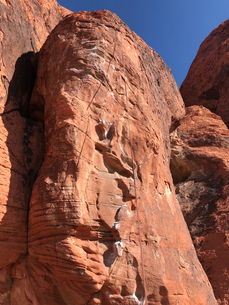 After three awesome days relaxing with my honey I came home for one night. The very next day I met up with my BFF and hopped on a plane to Vegas to climb for the weekend. We made it there just before 8PM and hightailed it to REI to get a new rope (didn’t want to fly both ways with it, and needed a new one anyway). Friday morning is the 16th, my birthday. We planned to do a birthday challenge, climbing a many pitches as years we are old. Marco’s birthday was in August and he didn’t get to do anything so he decided to do his own as well. Getting to the park at 7am and meeting up with my local buddy Brandon was step one, from there he would be our guide.